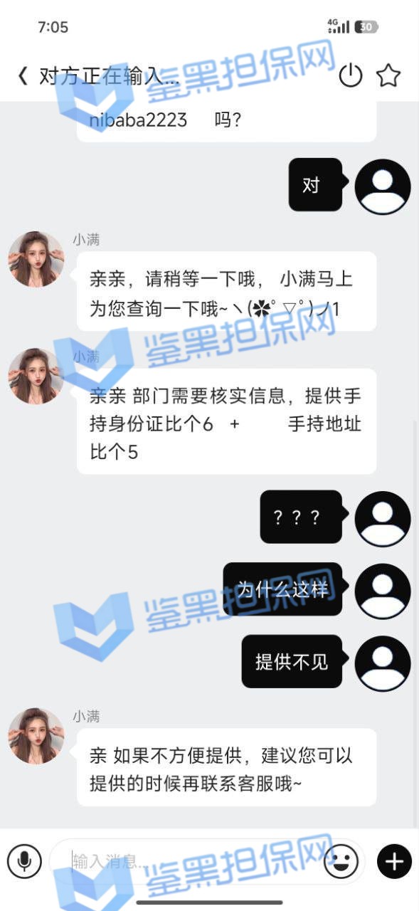 2、鉴黑担保网维权专员联系该平台相关负责人核实情况,对方无法说明让其提供这些资料的原因,也无法说清楚对方是否存在异常投注行为等原因,只是一味要求必须提供这些相关信息进行审核,存在刁难用户的恶劣行为,且该会员提款金额较大,故盈利金额也较大,这是平台不愿出款的借口,且沟通过程中态度恶劣,可判定为黑平台!!