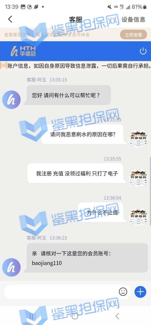 3、鉴黑担保网维权专员让其提供刷水相关资讯进行复查,对方拒绝提供拒绝任何沟通,故鉴黑担保网判定黑款行为,还请广大玩家远离!!