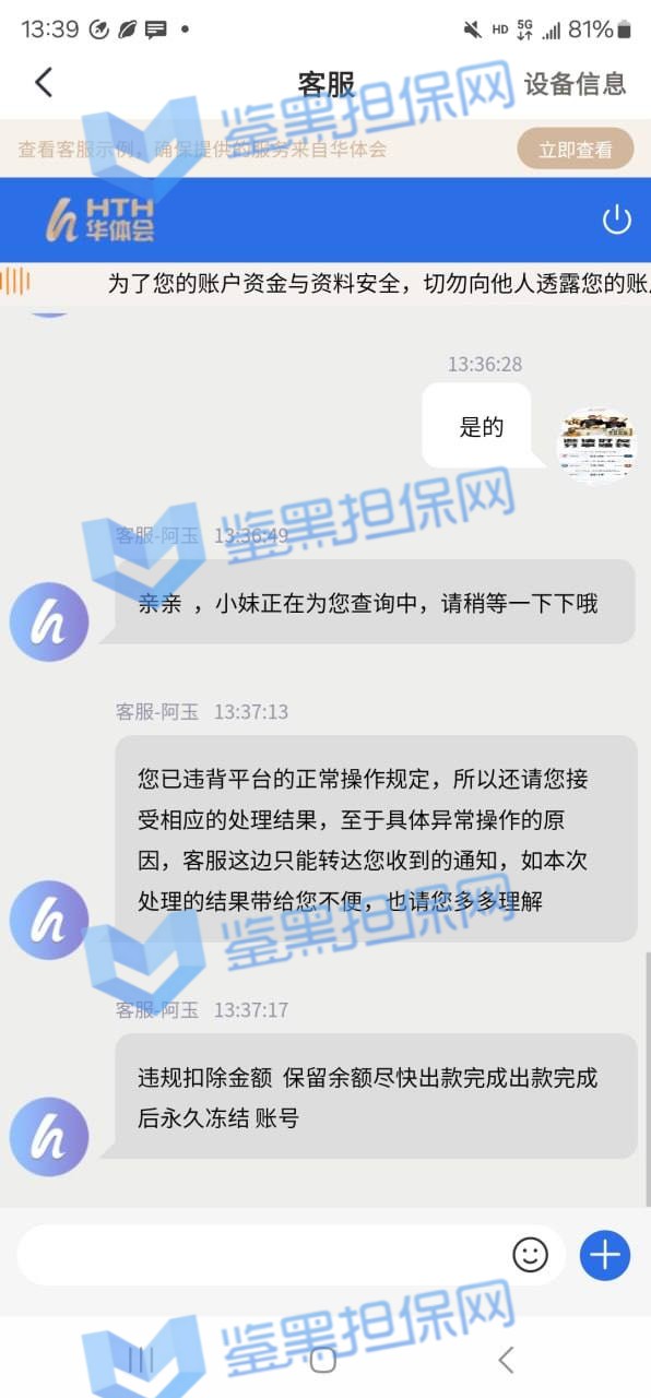 2、鉴黑担保维权专员联系该平台核实情况,对方表示该会员在老虎机游戏刷水套利,不支持继续游戏,做出的触发是扣除盈利退回本金,已经进行退本处理,不接受任何调解。